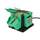 Многофункциональный модульный настольный станок с расширенным спектром применения отличается улучшенной системой фиксации затачиваемого инструмента. С помощью этого устройства пользователь может качественно выполнить не только заточку и доводку любого режущего ручного инструмента, но и сверл различного диаметра. Конструкция станка состоит из универсального силового блока с присоединяющимися по необходимости специализированными модулями. Для получения наилучшего результата у модели предусмотрено три независимых модуля: 1. Блок заточки сверл. 2. Блок заточки ножей и ножниц. 3. Блок заточки стамесок, зубил и лезвий. Для удобства работы на корпусе станка предусмотрены специальные крепления для неиспользуемых модулей. На модуле заточки стамесок, зубил и лезвий есть точная настройка, обеспечивающая получение режущей кромки под нужным углом. Для обеспечения еще большей безопасности во время работы в модуле применена магнитная фиксируется заготовки, препятствующая ее соскальзыванию. Модуль для сверл оснащен фиксатором, который обеспечивает точность зажима заготовки под требуемым углом к поверхности точильного камня для правильной заточки режущих плоскостей. Для наилучшей организации технологического процесса компактный размер станка позволяет установить его в любом удобном месте рабочего стола. Двигатель силового блока отличается низким уровнем шума и малой вибрацией.