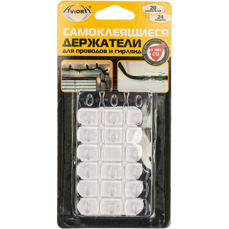 Держатель для проводов и гирлянд Aviora 302-108 самоклеящийся прозрачный до 0.5 кг 20 штук