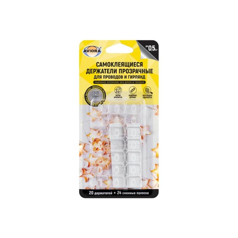 Держатель для проводов и гирлянд Aviora 302-202 самоклеящийся прозрачный до 0.5 кг 20 штук