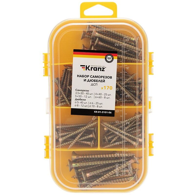 Набор саморезов и дюбелей по дереву Kranz (170 штук, KR-01-3101-06)