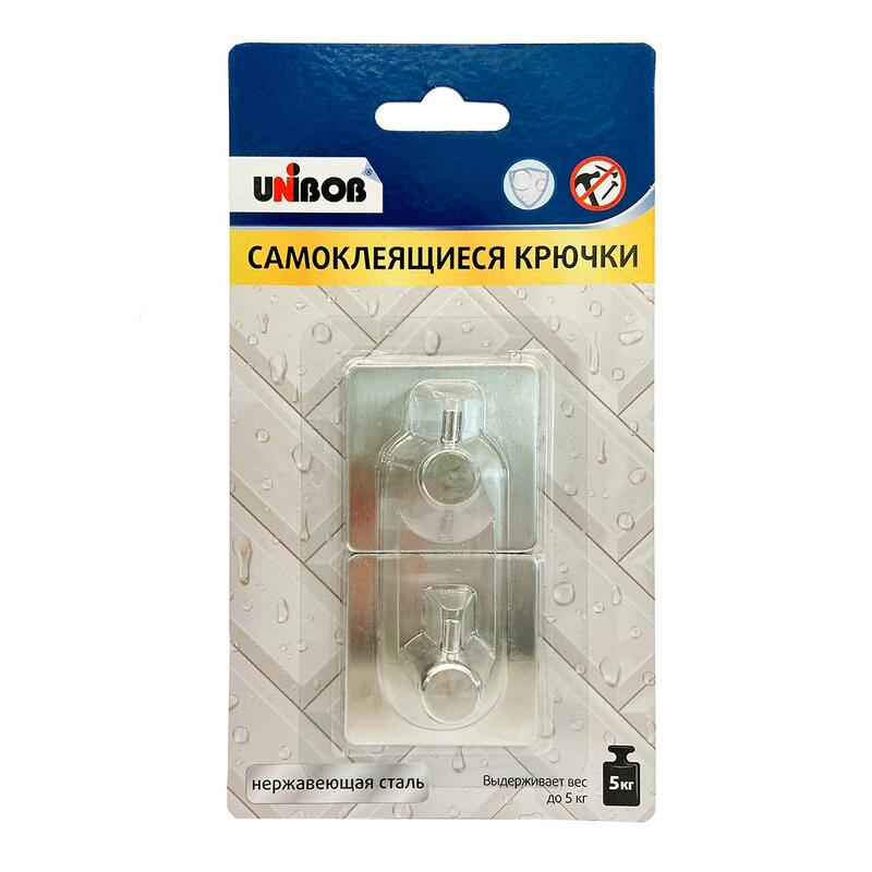 Крючок универсальный Unibob самоклеящийся серебристый до 5 кг (2 штуки)