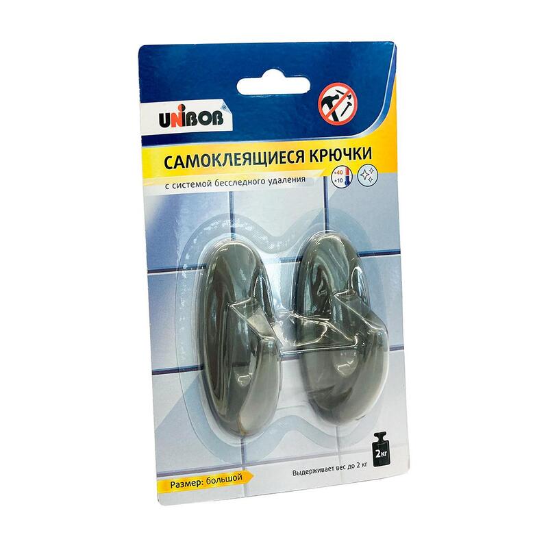 Крючок универсальный Unibob самоклеящийся серый до 2 кг (2 штуки)
