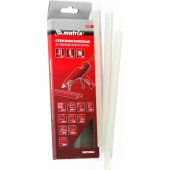Стержни клеевые 11×200 мм, прозрачные, 6 штук Matrix. Применяются для склеивания изделий из дерева, металла, пластика, ткани, кожи, стекла, керамики, бумаги, картона, резины и других материалов. Предназначены для использования с термоклеящими пистолетами. Наилучшая склейка достигается у шершавых, пористых и имеющих высокую адгезию поверхностей. С помощью термоклея возможно создание временной водонепроницаемости при отсутствии сильного давления воды и нагревания (таким образом заделывают трещины в ведрах, садовых лейках, душевых кабинах и др.). Запрещается нагревание с помощью открытого огня и других приспособлений, применение с поверхностями, соприкасающимися с продуктами питания. Во избежание ожогов, запрещено трогать расплавленный клей руками.