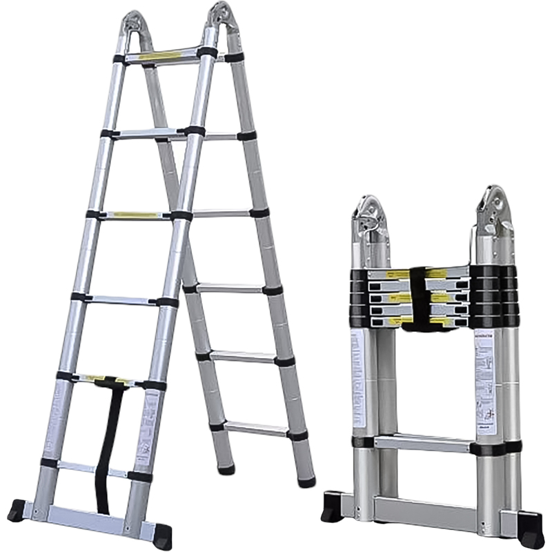 Двухсторонняя телескопическая лестница с шарниром предназначена для проведения различных видов работ на высоте до 6 метров. Она идеальна для использования как в домашних условиях, так и в профессиональной сфере, позволяя выполнять работы по ремонту, покраске, установке осветительных приборов и других задач на высоте. Лестница состоит из двух секций, которые выдвигаются телескопическим методом и соединены прочными стальными шарнирами.