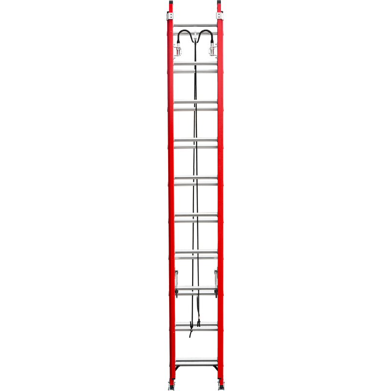 Лестница стеклопластиковая двухсекционная приставная с канатной тягой и крюками серии FGS предназначена для проведения различных видов работ на высоте до 7,5 м.