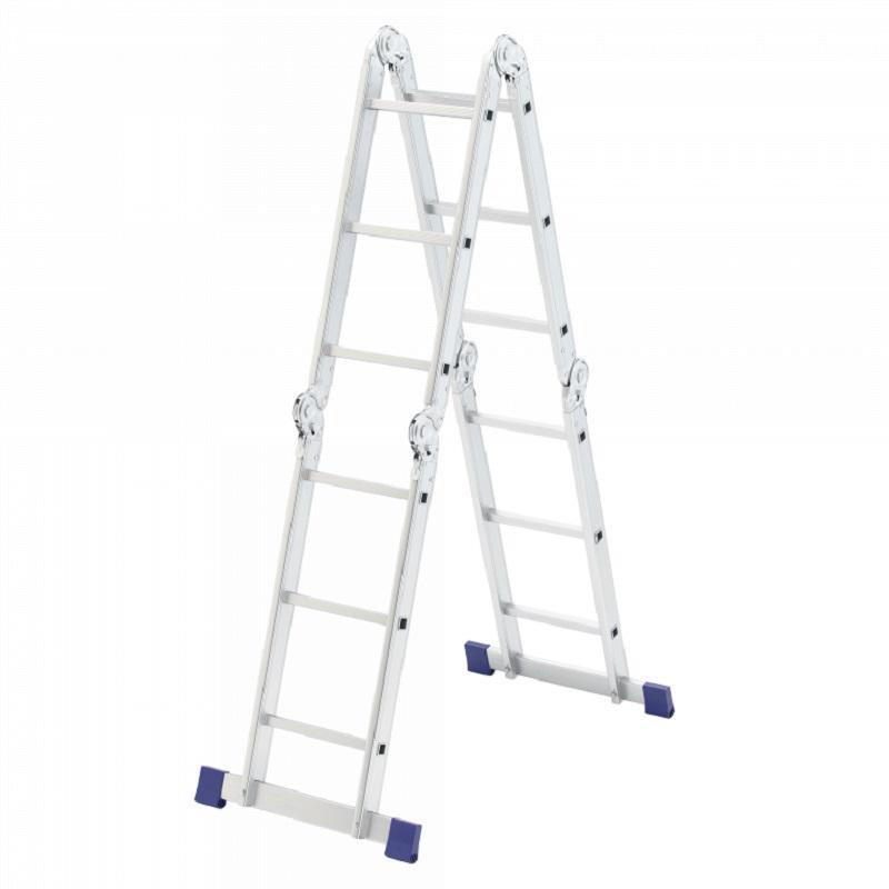 Шарнирная алюминиевая лестница Сибртех 97881 представляет собой 4 секции по 3 ступени, которые можно настроить в нескольких рабочих положениях. Она может использоваться в качестве приставной лестницы, двухсторонней стремянки и помоста. Будет полезна как в быту, так и на небольших стройках, в гараже и магазинах.