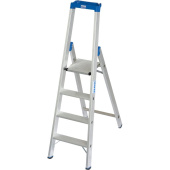 Торговая марка Krause Тип стремянка Страна происхождения Германия Материал алюминий Вес, кг 6.4 Гарантийный срок 120 мес Длина, см 175 Вид односторонняя Конструкция складная Максимальная нагрузка, кг 150 Размер в сложенном виде 50x17x175 см Лоток для инструментов Да Количество ступеней 4 Высота площадки 0.95 метр Толщина профиля, мм 1.25 Противоскользящие ступени Да Максимальная рабочая высота, м 2.95 Широкие ступени Нет Ширина ступеней 80 мм Ширина лестницы 500 мм Диэлектрическое покрытие Нет  -