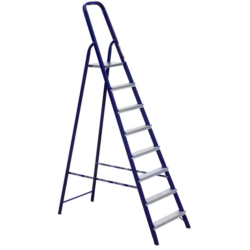 Стальная стремянка М8408 предназначена для проведения строительных, монтажных, ремонтных и других работ на производстве и в быту. Модель представляет собой переносную конструкцию, собранную из опорной и подъемной секций, а также рабочей площадки в верхней части изделия. Основу конструкции составляет окрашенный стальной профиль, ступени с рифленой поверхностью выполнены из алюминия, рабочая площадка — из оцинкованной стали. Стремянка способна выдерживать нагрузку до 150 кг, отличаясь при этом простотой эксплуатации, удобством хранения и транспортировки.