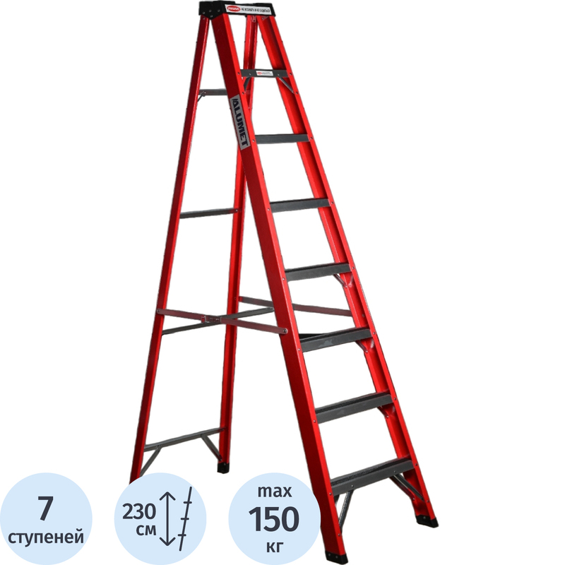 Стремянка стеклопластиковая 7 ступеней Алюмет (SF 1007). Применяется для проведения различных работ на высоте. Устойчивость материалов к образованию коррозии и высокий запас прочности гарантируют длительный срок службы. Оснащена алюминиевыми ступенями с противоскользящими накладками и пластиковым органайзером для инструментов, что обеспечивает комфорт при выполнении поставленных задач. Тетива выполнена из стеклопластика, благодаря чему она не проводит электрический ток.