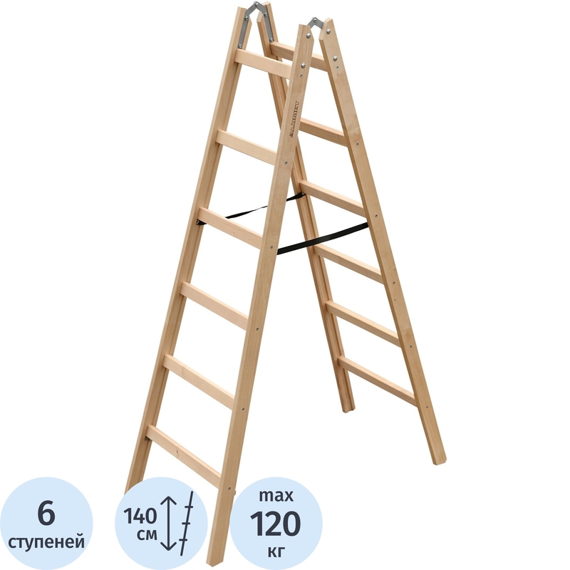 Стремянка деревянная двусторонняя Алюмет 2×6 ступеней (WD1206)