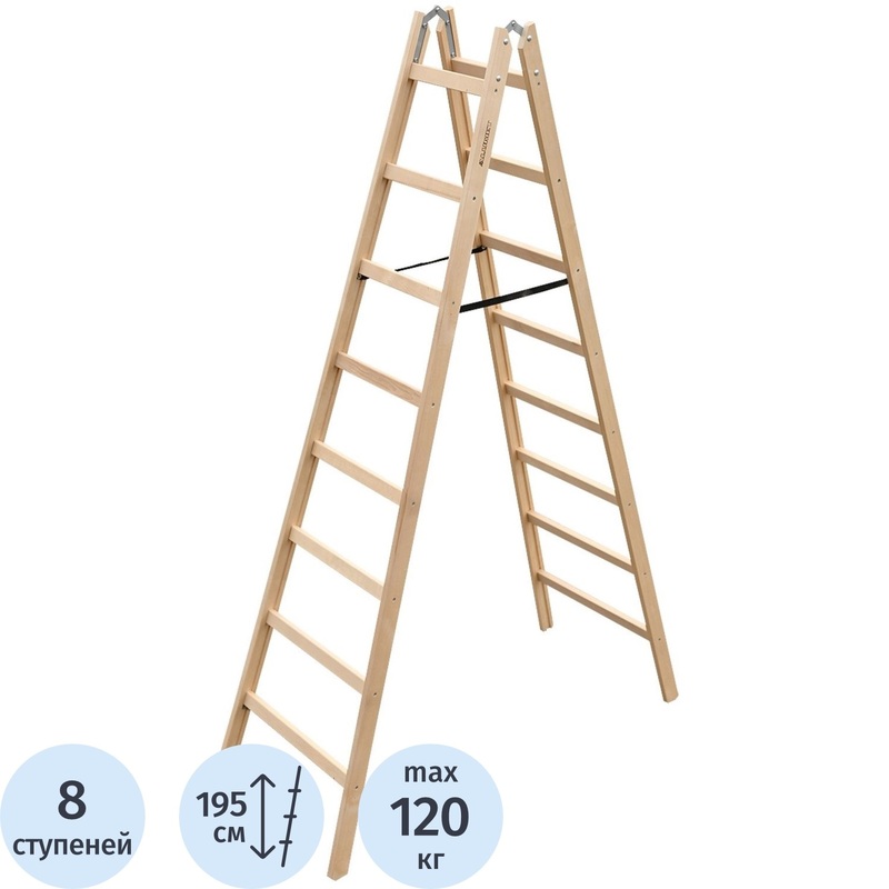 Стремянка деревянная двусторонняя Алюмет 2×8 ступеней (WD1208)