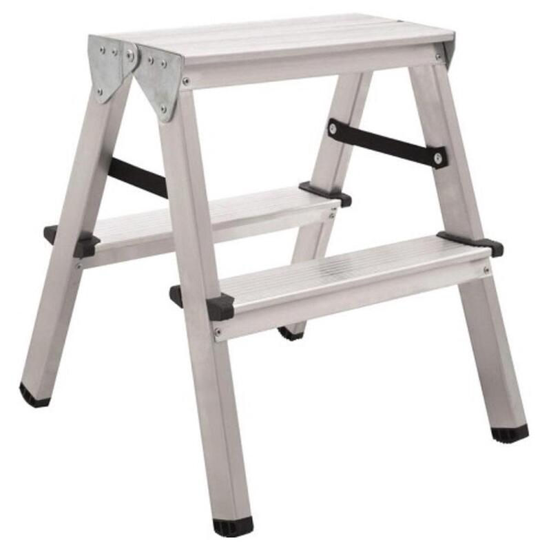 Стремянка алюминиевая 2×2 ступени Новая Высота 1120202 двухсторонняя позволяет работать, не переставляя стремянку и тем самым экономя время.