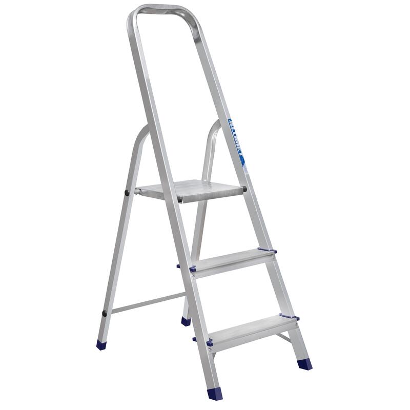 Алюминиевая стремянка АМ703 может использоваться для проведения строительных, монтажных, ремонтных и других работ на высоте до 2.7 м. Переносная конструкция состоит из основной части со ступенями, опорной части и рабочей площадки. Дуга безопасности является продолжением стороны, по которой осуществляется подъем. Модель оснащена противоскользящими опорами из пластика и рифлеными ступенями, повышающими ее безопасность. Стремянка рассчитана на эксплуатацию внутри и снаружи помещений и способна выдерживать нагрузку до 150 кг.