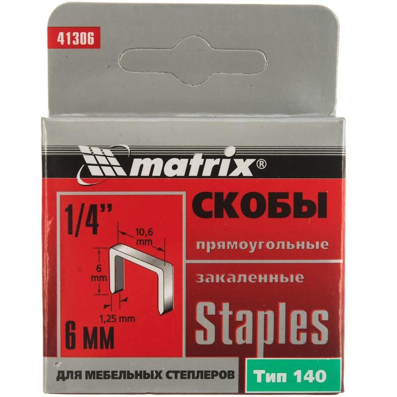 Скобы для степлера 6 мм закаленные тип 140 1000 шт Matrix (41306)