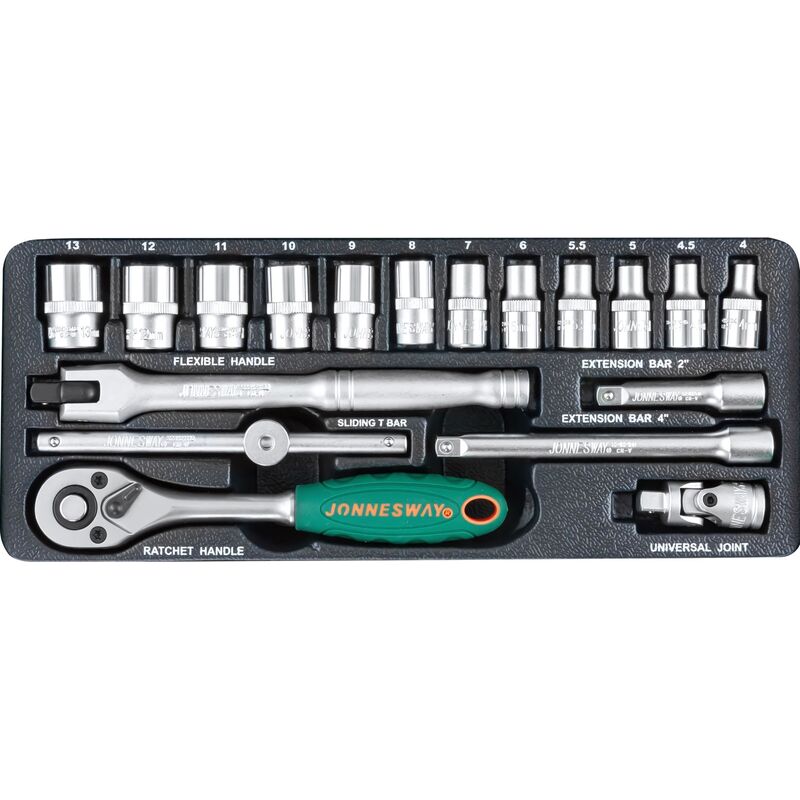 Набор головок торцевых Jonnesway 4-13 мм 1/4" 18 предметов (S04H2118S)