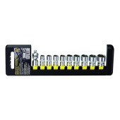 6-гранных SuperLock ¼" 10 предметов BERGER. 9шт.- головка торцевая6-гранная Superlock ¼«: 6,7,8,9,10,11,12,13,14 мм; 1шт.-кардан шарнирный ¼«: 38 мм. Выполнен из прочной и качественнойхром-ванадиевой стали (CR-V ). Упаковка — пластиковый держатель.