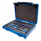 Набор шестигранных торцевых головок с принадлежностями King Tony 1/4″ 4-14 мм, 34 предмета 2534MRV включает в себя как оснастку, так и ручной инструмент. Ложемент из этиленвинилацетата (ЭВА) отличается устойчивостью к деформации и растворителям и оптимально подходит для размещения на инструментальной тележке. Кейс защищает комплект от ударов при транспортировке.