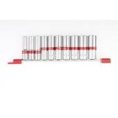 Набор состоит из торцевых головок увеличенной длины наиболее распространенных размеров, которые используются для монтажа/демонтажа крепежных изделий. Выполнены из качественной