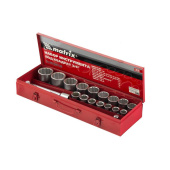 Набор головок для грузовых автомобилей и автобусов. Инструменты изготовлены из хромованадиевой стали, имеют полированное хромовое покрытие и упакованы в металлический кейс. В комплект входят: Трещоточный ключ под квадрат ¾.- вороток