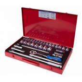 Набор головок с принадлежностями King Tony 1/2″, двенадцатигранные, 8-32 мм, 33 предмета 4034MR06 относится к профессиональному классу. Инструменты выполнены из хром-ванадиевой стали. Устойчивы к коррозии и механическим воздействиям. Набор предназначен для эксплуатации в автосервисах, автомастерских, на производстве, при выполнении ремонтных работ, а также в быту.