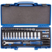 Набор торцевых головок с принадлежностями 1/4″, шестигранные, 4-14 мм, 48 предметов King Tony 2548MRV состоит из стандартных и глубоких головок, которые можно использовать для работы с крепежом в различных условиях. Комплект обладает небольшими размерами, что упрощает транспортировку. Съемный ложемент при необходимости можно заменить, вынуть для удобства проводимых работ. Крышка кейса дополнена мягкой прокладкой, которая исключает шум при перевозке. Комплектация Головки и принадлежности 1/4″ (6,35 мм); Головки торцевые стандартные 6-гранные 2335M 4, 4.5, 5, 5.5, 6, 7, 8, 9, 10, 11, 12, 13, 14 мм; Головки торцевые глубокие 6-гранные 2235M 4, 4.5, 5, 5.5, 6, 7, 8, 9, 10, 11, 12, 13, 14 мм; Трещотка дисковая 2752-06G 150 мм, 24 зубца; Удлинители 2223 50, 100 мм; Вороток-отвертка 2178DF 150 мм; Держатель вставок (бит) 1/4″ 2142 1 шт; Кардан 2792 36 мм; Вставки (биты) 1/4″; Вставки (биты) торцевые SLOTTED 1025S 3, 4.5, 5, 6.5, 8 мм; Вставки (биты) торцевые Phillips 1025P PH0, PH1, PH2, PH3; Вставки (биты) торцевые HEX 1025H H3, H4, H5, H6, H7, H8, H10; Внешний вид и/или характеристики товара могут быть изменены производителем в соответствии с производственным процессом.
