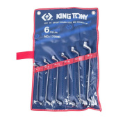 Набор накидных ключей King Tony 6-17 мм, 6 шт. 1706MR предназначен для использования в автослесарной мастерской или в быту. Каждый ключ выполнен из легированной хромованадиевой стали с последующей термообработкой, что обеспечивает высокую прочность и надежность в эксплуатации. Благодаря изгибу накидной части инструмента в 75 градусов можно работать с крепежом в труднодоступных местах. Чехол с отделением для каждого ключа удобен в транспортировке и хранении.