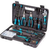 Подборка комплектующих включает самое необходимое: длинногубцы для манипуляций с проволокой, клещи для зачистки и обжима проводов, разводной ключ, шестигранный ключ в шести размерах, магнитный держатель,мини-отвертка 50 мм. для работы в труднодоступных местах, молоток, канцелярский нож, ножовка, органайзер для мелких деталей и крепежа, 2 отвертки с двухкомпонентными прочными ручками, плоскогубцы, 2 часовые отвертки для точных работ с техникой, измерительная рулетка на 3 метра, биты 25 мм. в 16 форматах сотверткой-держателем .