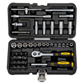 BG043-14 43 предмета в устойчивом к ударам кейсе с надежным замком. Все изделия обладают продолжительным рабочим ресурсом. Каждый предмет из набора изготовлен из хромованадиевой стали и защищен от коррозии. Благодаря уникальной технологии закаливания и гальванизации инструменты обладают высокой прочностью и износостойкостью.