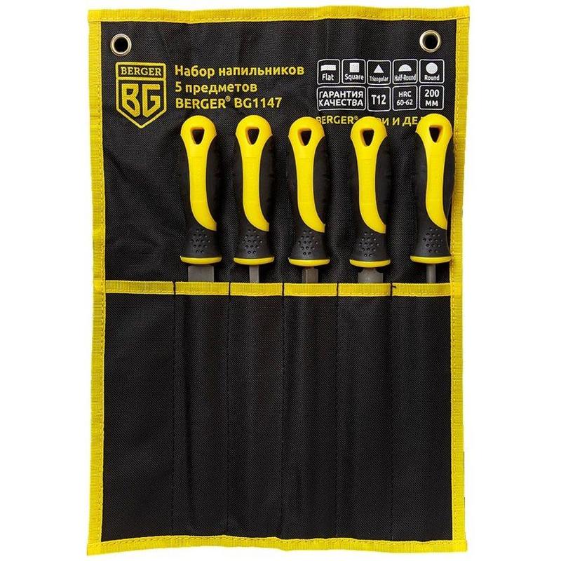 Набор напильников Berger 200 мм с двухкомпонентной рукояткой 5 предметов (BG1147)