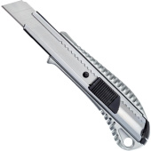 Нож универсальный Attache Selection с цинковым покрытием ширина лезвия 18 мм. Нож универсальный Attache Selection с сегментированным отламывающимся лезвием. Подходит для резки бумаги, пленки, ленты стрейч, кожи, для складских работ, а также для проведения ремонтных работ, не требующих приложения больших усилий. Эргономичный, надежный корпус с пластиковыми вставками с рифлением. Металлическая направляющая из нержавеющей стали обеспечивает надежную фиксацию лезвия в момент использования.