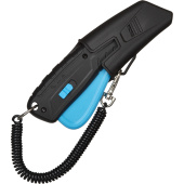Нож безопасный TOPFORT с трапециевидным лезвием шириной 19 мм в переносном держателе (кобуре) со спиральным кабелем. Эргономичный, надежный корпус из ABS-пластика. Применяется для разрезания картона, обоев, ковровых покрытий, тентов, полиграфической пленки и пленки из ПВХ, для вскрытия стрейч-пленки, коробок, разрезания шпагатов и стреппинг-ленты. Рекомендуем приобрести дополнительные лезвия — арт. 1960451 (10 штук в упаковке).