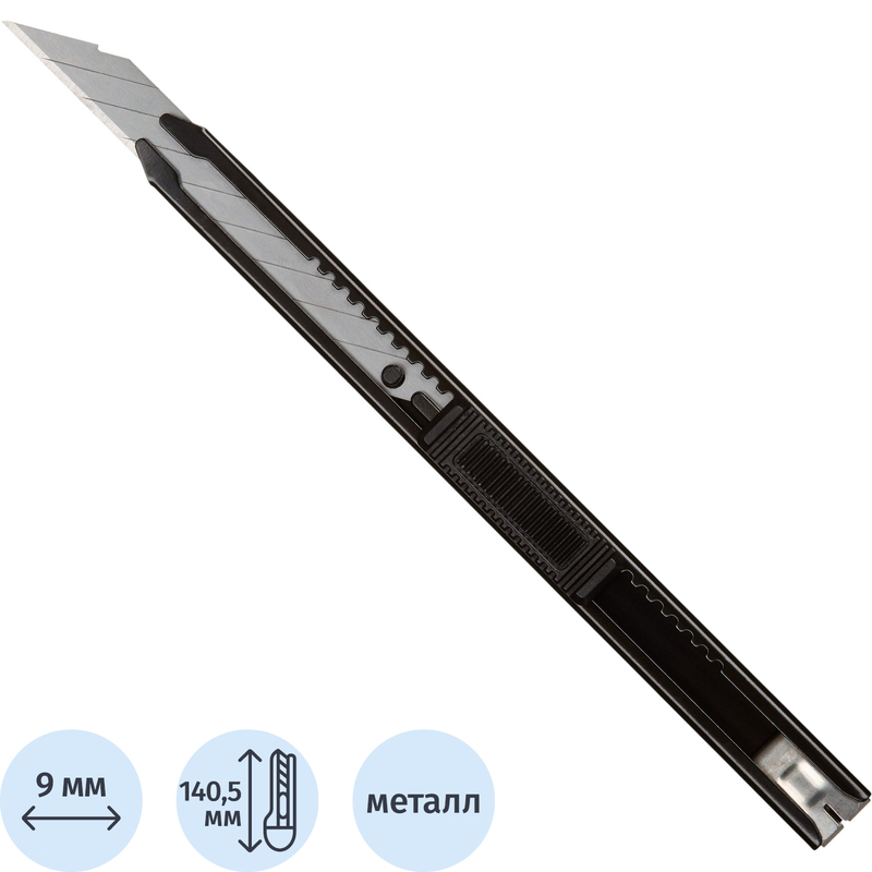 Нож канцелярский Attache с фиксатором металлический корпус(ширина лезвия 9 мм)