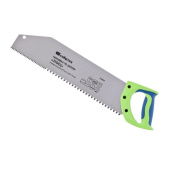 дюйм-2 ,5. Зубья ножовки закалены. Двухкомпонентная рукоятка изготовлена из ударопрочной пластмассы, крепится тремя винтами к полотну. Используется при продольном и поперечном пилении древесины.