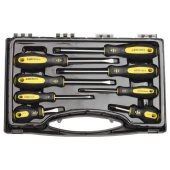 25055-H8_z02 ) предназначен для монтажа и демонтажа резьбовых соединений. Эргономичная двухкомпонентная рукоятка оптимальной формы обеспечивает как передачу высокого крутящего момента от руки к профилю крепежа, так и быстрое выполнение работ, не требующих больших усилий. Стержни из хромованадиевой стали обладают повышенной прочностью и долговечностью. Набор из 8 предметов: SL: 3×75; 5×100; 6×100; 2×38 мм. PH: 0×75; 1×100; 2×100 2×38 мм.
