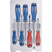 Набор отверток в коробке King Tony 30117MR — это универсальный ручной инструмент, который применим как дома, так и в мастерской для работы с крепежными узлами. Комплект состоит из 7 отверток, двух крестовых и пяти шлицевых. Рабочая часть инструмента выполнена из хромованадиевой стали и прошла процесс термической обработки поверхности, что увеличивает ее прочность. Двухкомпонентные рукоятки отличаются стойкостью к маслам, кислотам и другим химическим веществам.