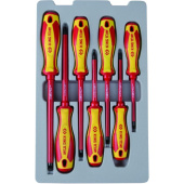 Набор отверток в коробке King Tony 30617MR подходит для монтажа и демонтажа прямых и крестовых резьбовых соединений. Набор из 7 отверток позволяет работать с различными размерами гаек и винтов. Диэлектрическое покрытие стержней обеспечивает безопасность для использования под напряжением. Двухкомпонентные рукоятки не скользят в руке.