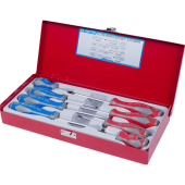 Набор отверток в металлическом кейсе 8 шт King Tony 33108MR используется для работы с крепежом, имеющим плоский и крестовой внутренний профиль. Каждая отвертка оснащена прочным стальным жалом и удобной рукояткой, выполненной из двухкомпонентного материала, обладающего противоскользящими свойствами. Все компоненты укомплектованы в закрывающийся, металлический кейс с ручкой с отдельными ячейками.