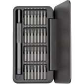 Отвёртка для точных работ Hoto с набором бит (28 предметов, HTT0009 GL) Максимальный крутящий момент в ручном режиме: 2 Нм. Размеры коробки: 149.5 × 78 × 19.5 мм. Вес: 216 г. Размеры отвёртки: 4 × 28 мм. В комплекте: 28 битов из легированной стали S2. Миниатюрная прецизионная отвёртка с широким набором бит подходит как для мобильных телефонов, игровых контролёров и других сложных электронных устройств, так и для небольших предметов, таких как часы, очки, игрушки и т. д. Биты изготовлены из высококачественной легированной стали твёрдостью до 60 HRC, отличаются прочностью и долговечностью, т.к. обработаны специальным антикоррозийным покрытием. Задний колпак отвёртки поворачивается на 360°, за счёт инструмент удобно использовать одной рукой. Ручка выполнена из нескользящего алюминиевого сплава, а биты оснащены магнитом, который позволяет легко присоединять бит к отвёртке. Полуавтоматический кейс для хранения: при достижении определённого угла, крышка автоматически откидывается, а при некотором наклоне крышка защёлкивается. Биты держатся на магнитах. Компактный, тонкий и лёгкий, как смартфон, кейс удобен для хранения и путешествий. Внешний вид и/или характеристики товара могут быть изменены производителем в соответствии с производственным процессом.