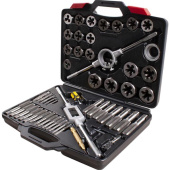 SK-5 M6-M24 , кейс, 51шт Мастак 351-00051 °C — комплект для нарезания резьбы различных размеров на необходимые заготовки. Данный набор является оптимальным вариантом для эксплуатации на профессиональных станциях технического обслуживания автомобилей, в сервисах, слесарных мастерских и промышленных предприятиях. Для изготовления приспособлений использовались такие материалы как: инструментальная быстрорежущая сталь (SK5),хром-ванадиевая сталь (Cr-V ), латунь, пластик.