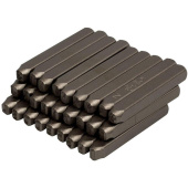 Набор ударных клейм (5 мм, буквы-латиница, 27 предметов) King Tony 11427SQ05 позволяет делать буквенные оттиски на свинцовых, латунных, дюралевых, железных, медных и алюминиевых поверхностях с целью их маркировки. Метод нанесения обозначений — ударный. Профессиональные приспособления отличаются долгим сроком службы, не скалываются и не проминаются. Материалом клейм служит прочная закаленная легированная инструментальная сталь CrV.