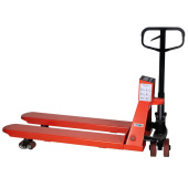 CBY-CW2 с весами, предназначена не только для перемещения паллет с грузом, но и одновременно взвешивает груз. На любом складе, где приходуется и расходуется товар по весу, а не поштучно — это наиболее удобный и быстрый способ обрабатывать такие грузы. Для отслеживания веса тележка снабжена LED дисплеем. Весы работают от аккумулятора. Надежный разборный гидроузел. Тележка выпускается в модификации с двумя грузоподъемностями 2 и 2,5 тонны. Это позволяет ей работать практически со всеми грузами на стандартном евро паллете. -