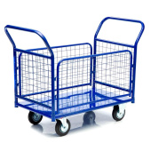 Платформенная четырехколесная тележка с сетчатыми бортами КПО-300-