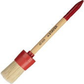Круглая малярная кисть Stayer Master предназначена для работ со всеми видами лакокрасочных материалов. В первую очередь — с масляными красками и эмалями. Рекомендована для медленно сохнущих грунтов, красок без растворителей. Не рекомендуется использовать с клеящими и известковыми веществами, поскольку волоски держатся на клеевой основе. Пучок, зафиксированный эпоксидной смолой, совместим со всеми типами ЛКМ. Инструмент изготовлен из светлой натуральной щетины. Удобная деревянная ручка имеет отверстие для подвески. Ширина изделия составляет 40 мм. Обойма изготовлена из пластика.