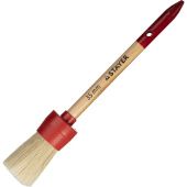 Круглая малярная кисть Stayer Master предназначена для работ со всеми видами лакокрасочных материалов. В первую очередь — с масляными красками и эмалями. Рекомендована для медленно сохнущих грунтов, красок без растворителей. Не рекомендуется использовать с клеящими и известковыми веществами, поскольку волоски держатся на клеевой основе. Пучок, зафиксированный эпоксидной смолой, совместим со всеми типами ЛКМ. Инструмент изготовлен из светлой натуральной щетины. Удобная деревянная ручка имеет отверстие для подвески. Ширина изделия составляет 35 мм. Обойма изготовлена из пластика.