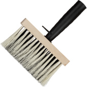 Кисть-макловица Stayer Master подойдет для работы на больших поверхностях. Например, для нанесения грунтовки или побелки на потолок. Ее лучше использовать для латексных, акриловых, водно-дисперсионных красок и лаков. Подходит для любых видов краски. Изделие сделано из искусственной щетины, деревянного бандажа и удобной пластиковой рукоятки. На ручке есть выступ, за который макловицу можно подвешивать на ведро. Ширина изделия составляет 140 мм. Обойка изготовлена из дерева, рукоять — из пластика.