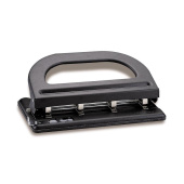 Дырокол KW — Trio 964 пробивает от двух до четырех отверстий в папке из 30 листов бумаги одновременно. Диаметр пробиваемых отверстий — 6 мм. Конструкция позволяет регулировать расстояние между проделываемыми отверстиями. Дырокол снабжен резервуаром для сбора конфетти и линейкой деления на форматы. Выполнен в металлическом корпусе черного цвета.