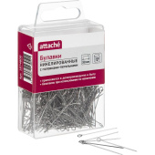 Металлические булавки Attache с головками-петельками используются для различных целей, как для прикрепления бумаги на пробковые доски, так и при шитье либо в иных целях. Изготовлены и качественной металла с никелированным покрытием. В пластиковой упаковке 500 булавок. Длина булавки: 30 мм. Цвет: серебристый (металлический).