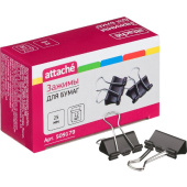 Металлические зажимы для бумаг Attache используются для скрепления документов без использования степлеров. Зажимы из металла с черным покрытием. Размер зажима: ширина 25 мм, высота 42 мм, глубина закладки 14 мм. Позволяет скреплять до 100 листов плотностью 80 г/кв.м, не деформируя при этом бумагу. Зажимы для бумаг поставляются по 12 штук в картонной упаковке.