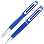 В наборе Diplomat шариковая и перьевая ручки с металлическим корпусом и многослойным матовым лаковым покрытием синего цвета. В шариковую ручку заправлен стержень easyFlow с толщиной линии письма 1 мм, обеспечивающий легкое и гладкое письмо. К перьевой ручке прилагается картридж с синими чернилами. Эргономичная форма обеспечивает удобство и комфорт при письме. Перо с толщиной линии М (средняя) из отполированной нержавеющей стали, с оригинальной гравировкой, идеально скользит по бумаге. Подарочная коробочка с магнитной застежкой и ложементом для двух ручек.
