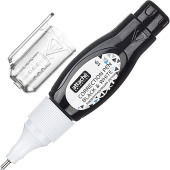 Корректирующая ручка Attache Black&White предназначена для точечных исправлений на любых типах бумаги. Данный вид корректировки особенно удобен, если Вам нужно исправить небольшой объем текста или даже самую маленькую помарку. Идеально подходит для студентов и старших школьников. Объем флакона - 6 мл. Металлический наконечник позволяет наносить тонкие линии. Содержит быстросохнущую основу, обладает высокой кроющей способностью. 1. Перед применением тщательно встряхните средство в течение не менее 10 секунд, затем снимите колпачок.2. Прижмите наконечник ручки к поверхности бумаги.3. Нажмите на корпус ручки для подачи корректирующего средства и равномерно нанесите его на бумагу.4. После применения плотно закройте колпачок.